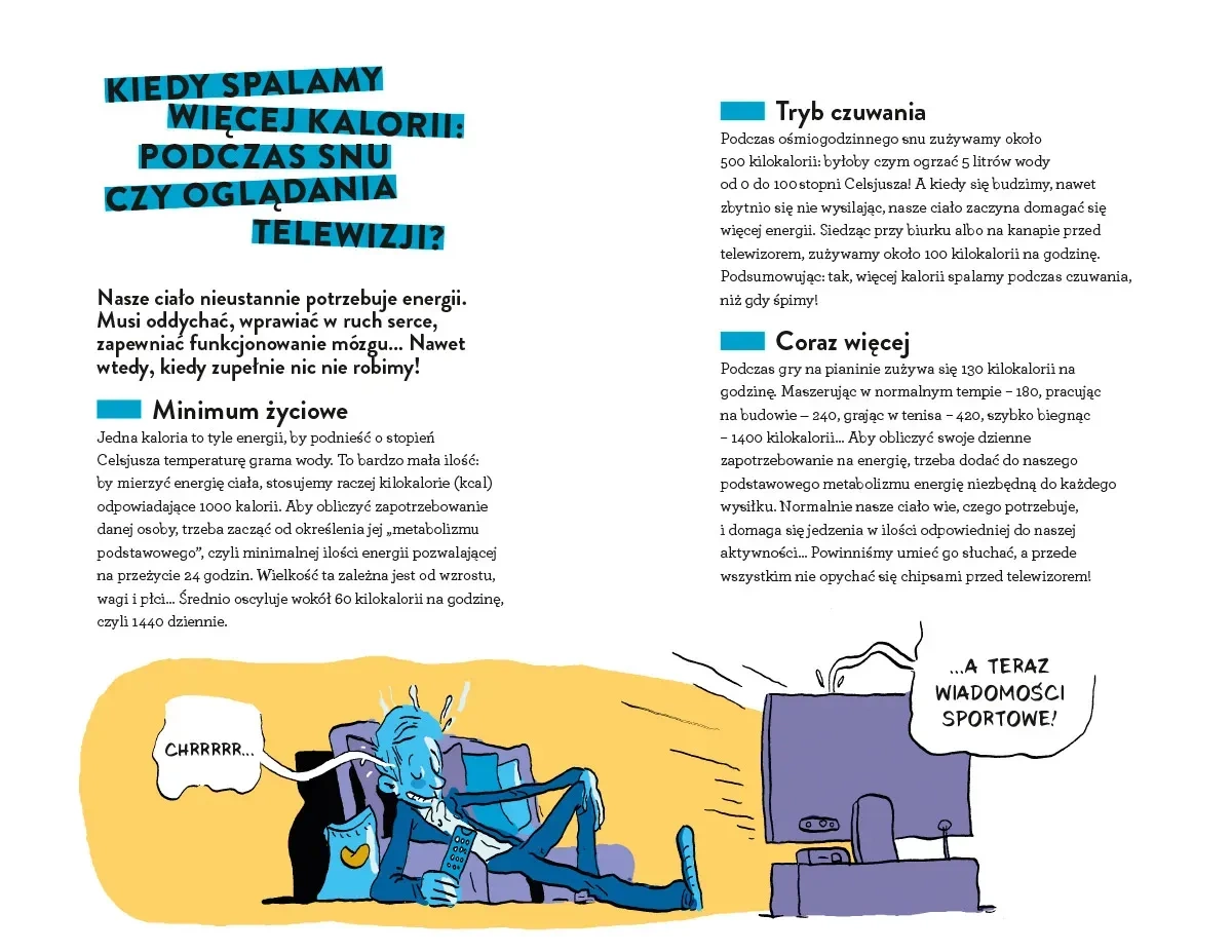 Czego mamy więcej, brwi czy rzęs? Gdyby na Ziemi mieszkało 1000 osób, ile z nich byłoby Europejczykami? Który język ma więcej słów, angielski czy francuski? Czy istnieje oko większe od piłki do koszykówki? Czy na świecie rodzi się tyle samo dziewczynek, ile chłopców? Czy starczyłoby życia na policzenie głośno do miliarda? Kiedy spalamy więcej kalorii: podczas snu czy oglądania telewizji? Czy w Australii jest więcej kangurów czy ludzi?