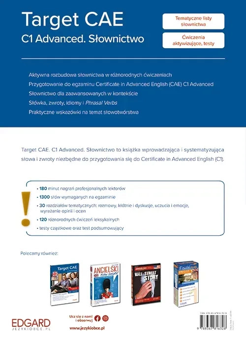 Podręcznik zawiera 30 rozdziałów tematycznych, 120 różnorodnych ćwiczeń leksykalnych przygotowujących do egzaminu CAE, jak również nagrania MP3 do pobrania.