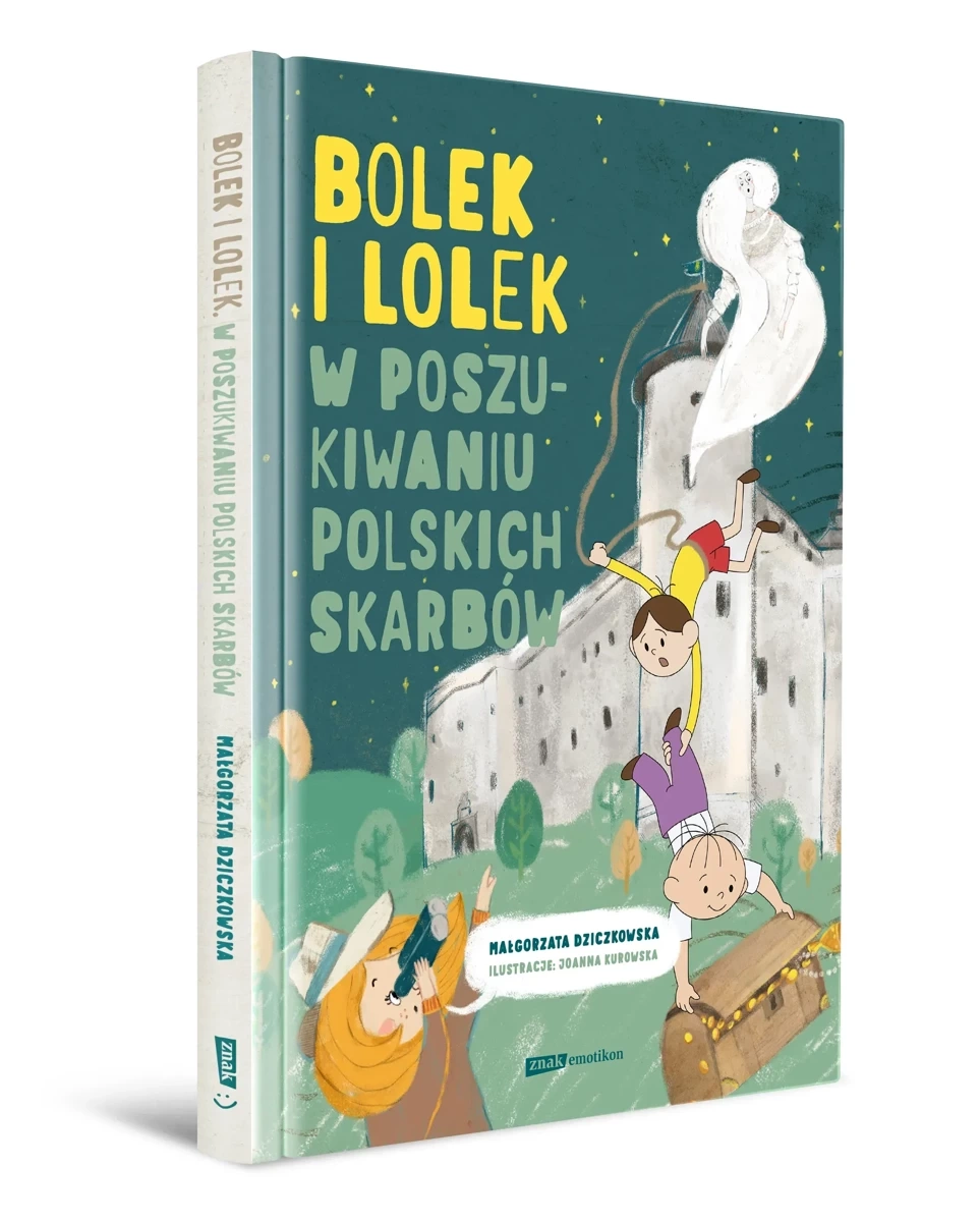Nasi bohaterowie weszli w końcu do swojego wymarzonego skarbca i aż przymknęli oczy od blasku. Na wózku górniczym leżały piękne sztaby złota. Jedna na drugiej. Tylko czekały, aż ktoś je weźmie. Lolek ruszył pierwszy i w biegu już otwierał swój pusty do tej pory plecak. Bolek pędził tuż za nim, depcząc mu po piętach. Równocześnie dopadli wózek, złapali po jednej sztabce i.... - Są przyklejone - powiedział zaskoczony Bolek. - Nie da się ich podnieść. - Nie są przyklejone, tylko są bardzo, bardzo ciężkie - zaśmiała się Cysia. - Jedna taka sztabka ważny dwadzieścia kilogramów... - Czyli dwie sztabki ważą tyle co ja - powiedział zszokowany Lolek. - Nie uniosę jej, stwierdził ze smutkiem i zaczął zamykać plecak. - Hej, nie martwcie się! Chcieliśmy znaleźć skarbiec i go znaleźliśmy, chcieliśmy mieć przygody i je mamy! A to jeszcze nie jest koniec naszej wyprawy! Nagle zza wózka wystawił główkę dziwny zielony stworek, którego poznali już jako gnoma. Popatrzył w oczy smutnych i zawiedzionych chłopców, powiedział coś po gnomowemu i wyciągnął na dłoni malutkie grudki złota. Bo nawet gnomy nie lubią, kiedy ktoś jest smutny, i zaraz chcą poprawić każdemu humor. /fragment książki/