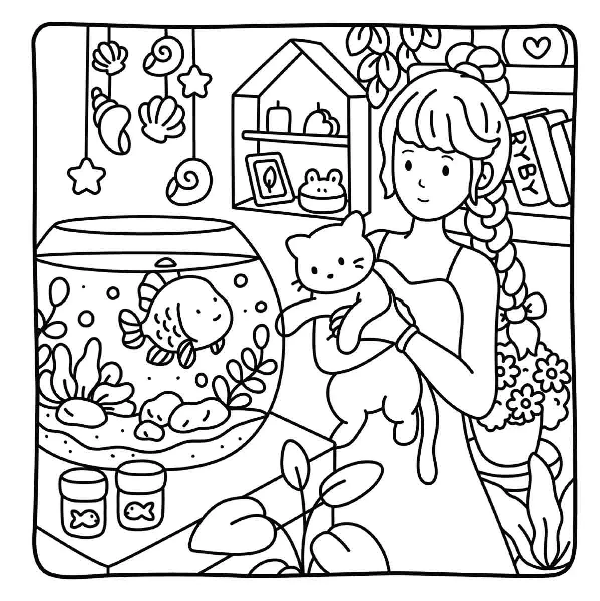 Cozy Girl Life: Cute Coloring Book for Adults & Teens Featuring Adorable Moments, Everyday Activitie
