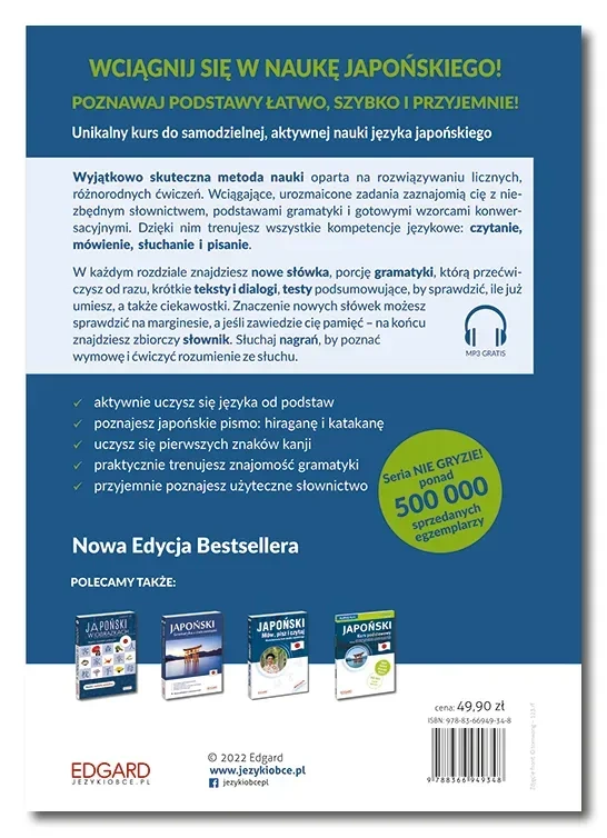 Japoński nie gryzie to nowa edycja bestsellerowego kursu do samodzielnej, aktywnej nauki języka japońskiego od podstaw!