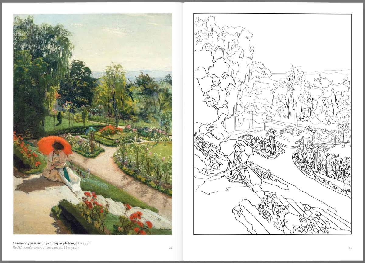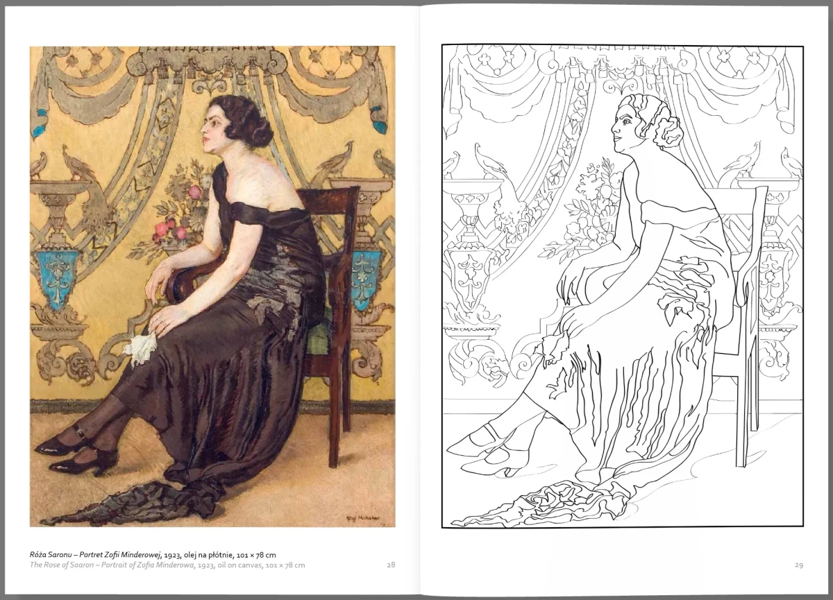Zeszyt do kolorowania z dziełami Józefa Mehoffera. To propozycja skierowana do wszystkich miłośników kolorowanek oraz sztuki polskiej, którzy nie tylko podziwiają dzieła największych malarskich mistrzów, ale także sami chętnie sięgają po plastyczne przybory. Zeszyt zawiera ilustracje 14 reprodukcji obrazów Józefa Mehoffera. Obok zdjęcia danego dzieła umieszczono szablon do samodzielnego pokolorowania. Dzięki temu każdy kolorujący będzie mógł w swojej wersji zbliżyć się do oryginału lub przeciwnie – nadać obrazkowi własne barwy, zmieniając jego dotychczasowy charakter.