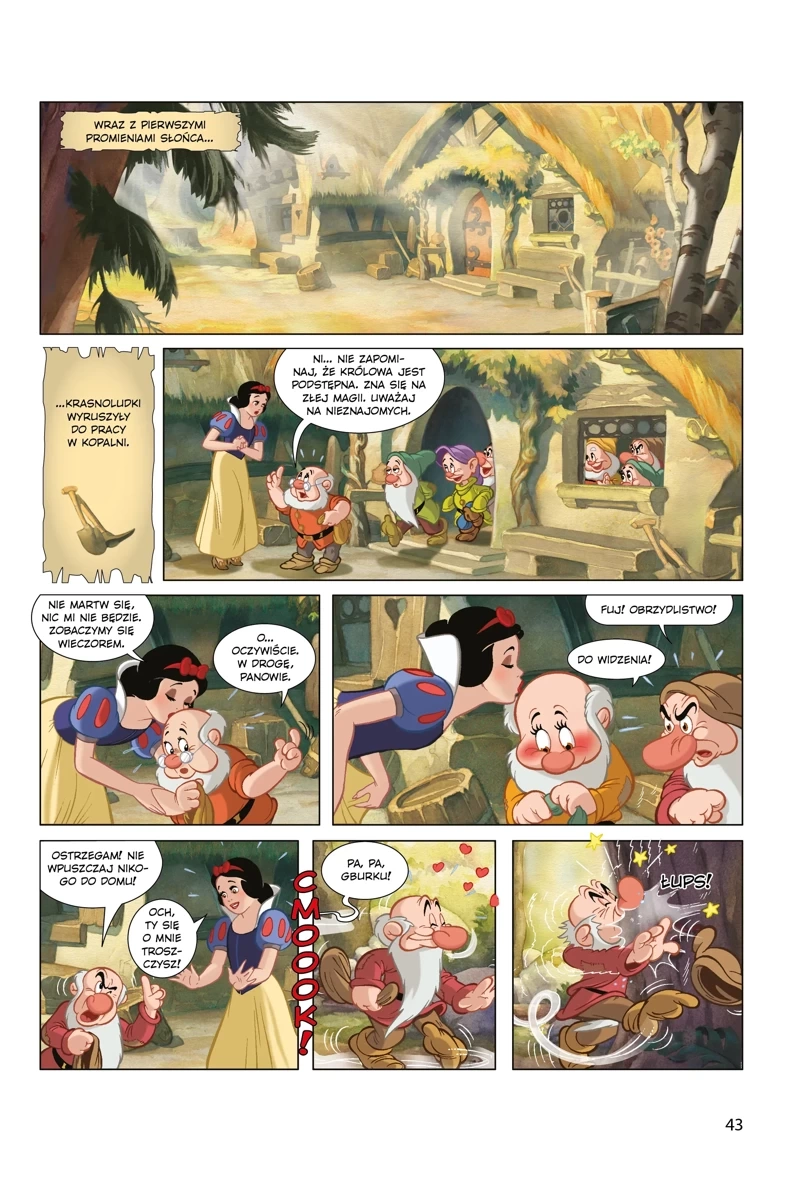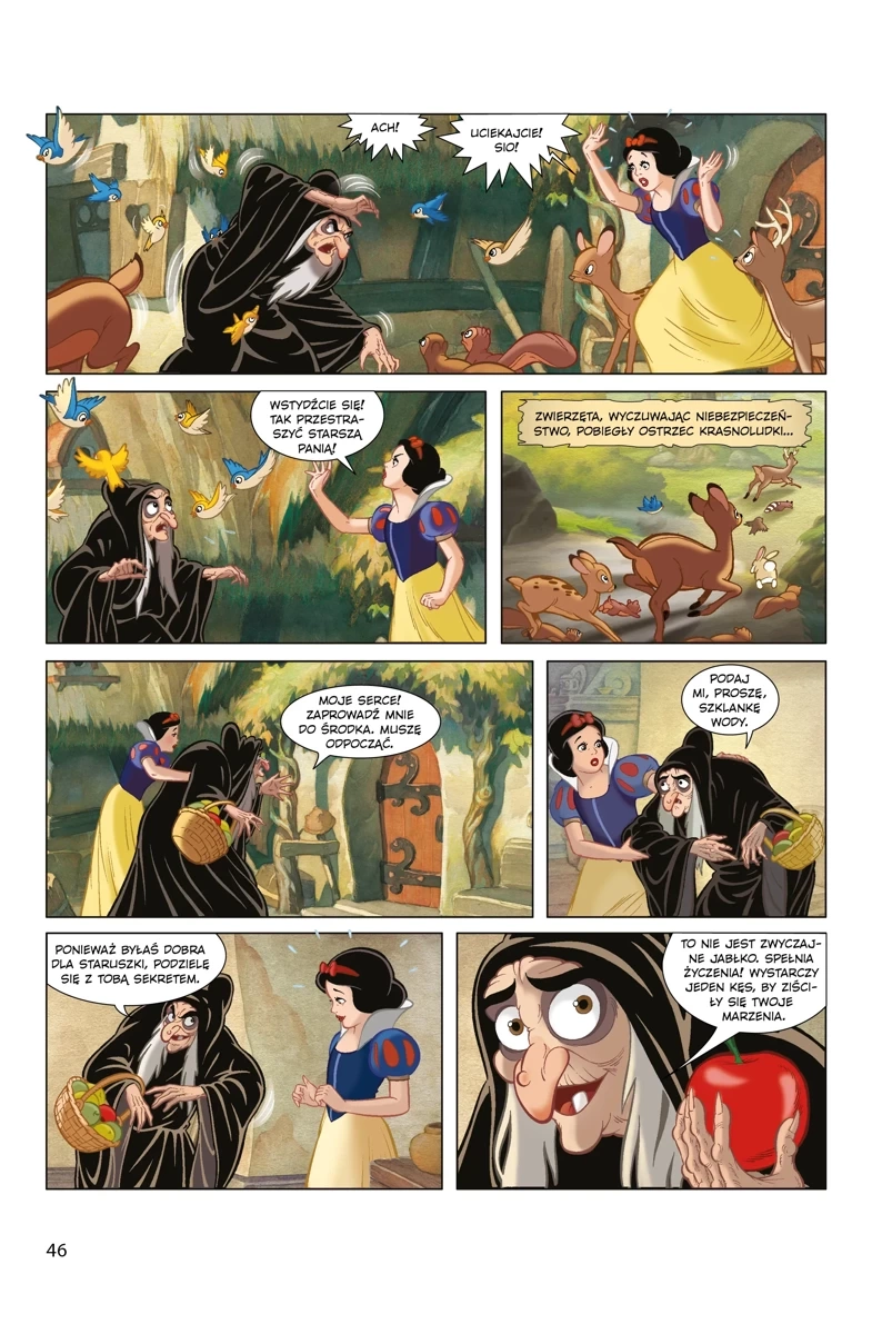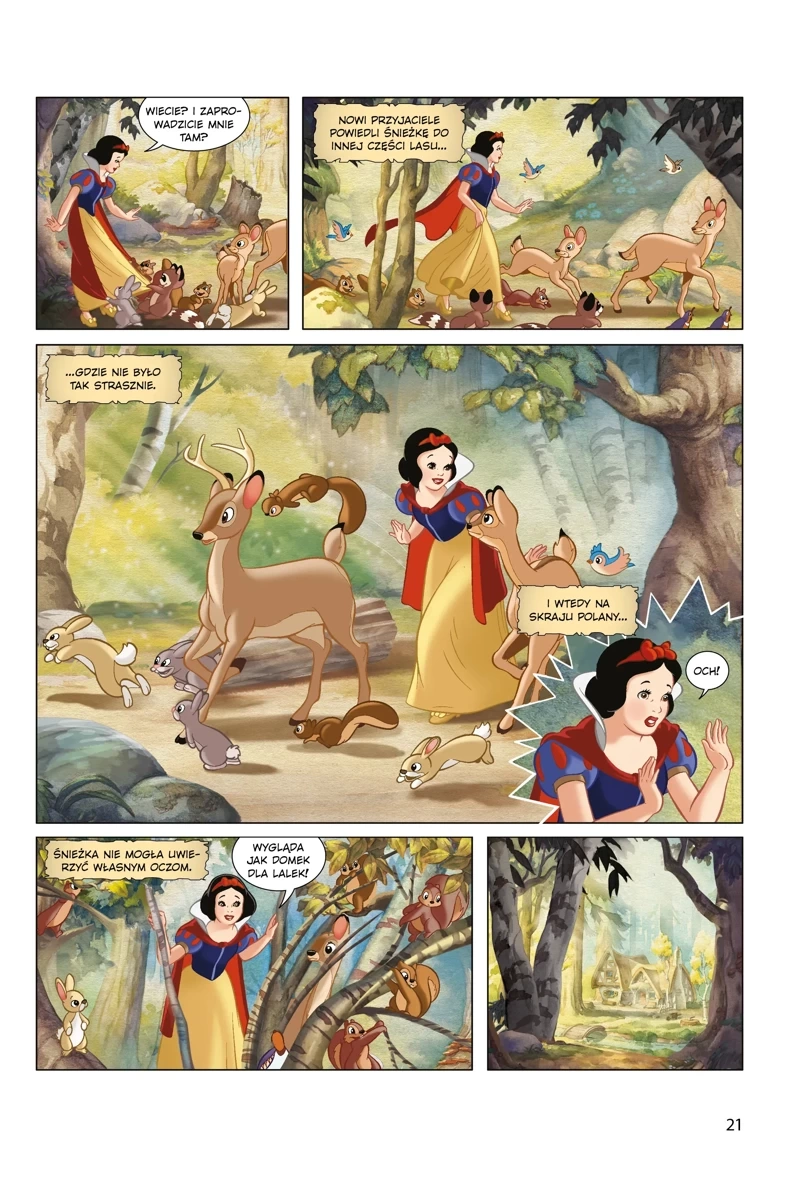 Komiksowa adaptacja najsłynniejszej disnejowskiej baśni filmowej - "Królewny Śnieżki"! Kolejny tom kolekcji klasycznych baśni Disneya, w której znajdują się takie tytuły jak "Król Lew", "Mulan", "Zakochany kundel" czy "Aladyn". Dorastająca królewna Śnieżka staje się coraz ładniejsza, co budzi zazdrość jej niegodziwej - lecz pięknej - macochy. Królowa postanawia pozbyć się dziewczyny. Na szczęście dzięki zwierzętom i krasnoludkom królewna znajduje schronienie w głębi lasu. Ale zła władczyni nie zamierza zostawić jej w spokoju... Jak się skończy walka niewinnego dobra z podstępnym złem?