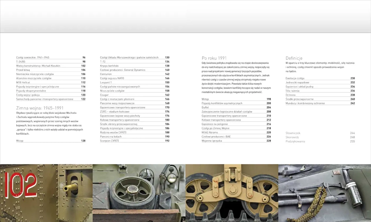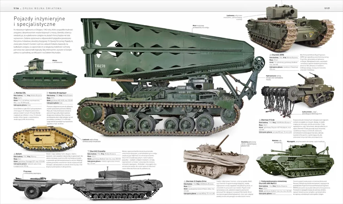 "Księga czołgów. Ilustrowana historia pancernych wozów bojowych" to obszerne opracowanie śledzące ewolucję najskuteczniejszych i najbardziej rozpoznawalnych wozów bojowych w dziejach. Publikacja zawiera szczegółowe ilustracje oraz omówienie ponad 400 typów czołgów i innych pojazdów pancernych. Dodatkowo przedstawia różnorodne rodzaje uzbrojenia oraz sylwetki kluczowych konstruktorów, czyniąc ją niezastąpionym przewodnikiem po burzliwej historii wozów bojowych.Dlaczego warto kupić