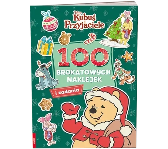 Książka z zadaniami i brokatowymi naklejkami o tematyce świątecznej