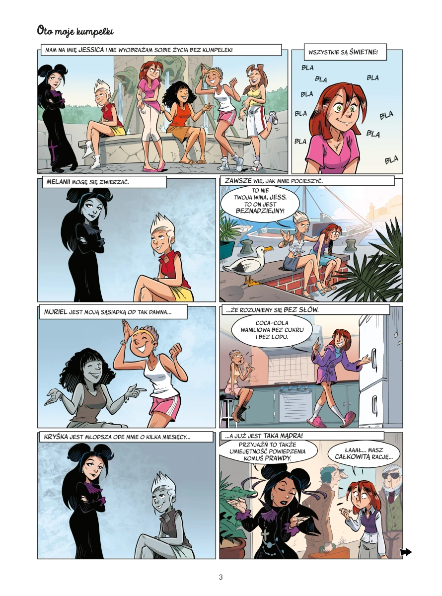 Wymyślona przez autora hitu „Sisters” seria humorystyczna dla nastoletnich dziewczyn i o nastoletnich dziewczynach! Jessica chodzi do szkoły średniej i ma mnóstwo kumpelek. Jedne potrafią ją rozśmieszyć, innym może się ze wszystkiego zwierzyć, a jeszcze inne podziwia. Oczywiście są też chłopcy, tyle że oni pochodzą jakby z innego świata, co nie oznacza, że Jess nie chce im się podobać... Oto pełne humoru i niespodziewanych zdarzeń przygody nastolatki i jej koleżanek! Scenarzystą „Kumpelek” jest Christophe Cazenove, który odniósł wielki sukces serią „Sisters”, a polskim czytelnikom znany jest również z opowieści „Kasia i jej kot” oraz „Mali bogowie”. Za rysunki odpowiada Philippe Fenech, twórca ilustracji do znakomicie ocenianego cyklu przygodowo-humorystycznego „Ulysse!” czy przeznaczonej dla młodych odbiorców historii „Léo Passion Rugby”.