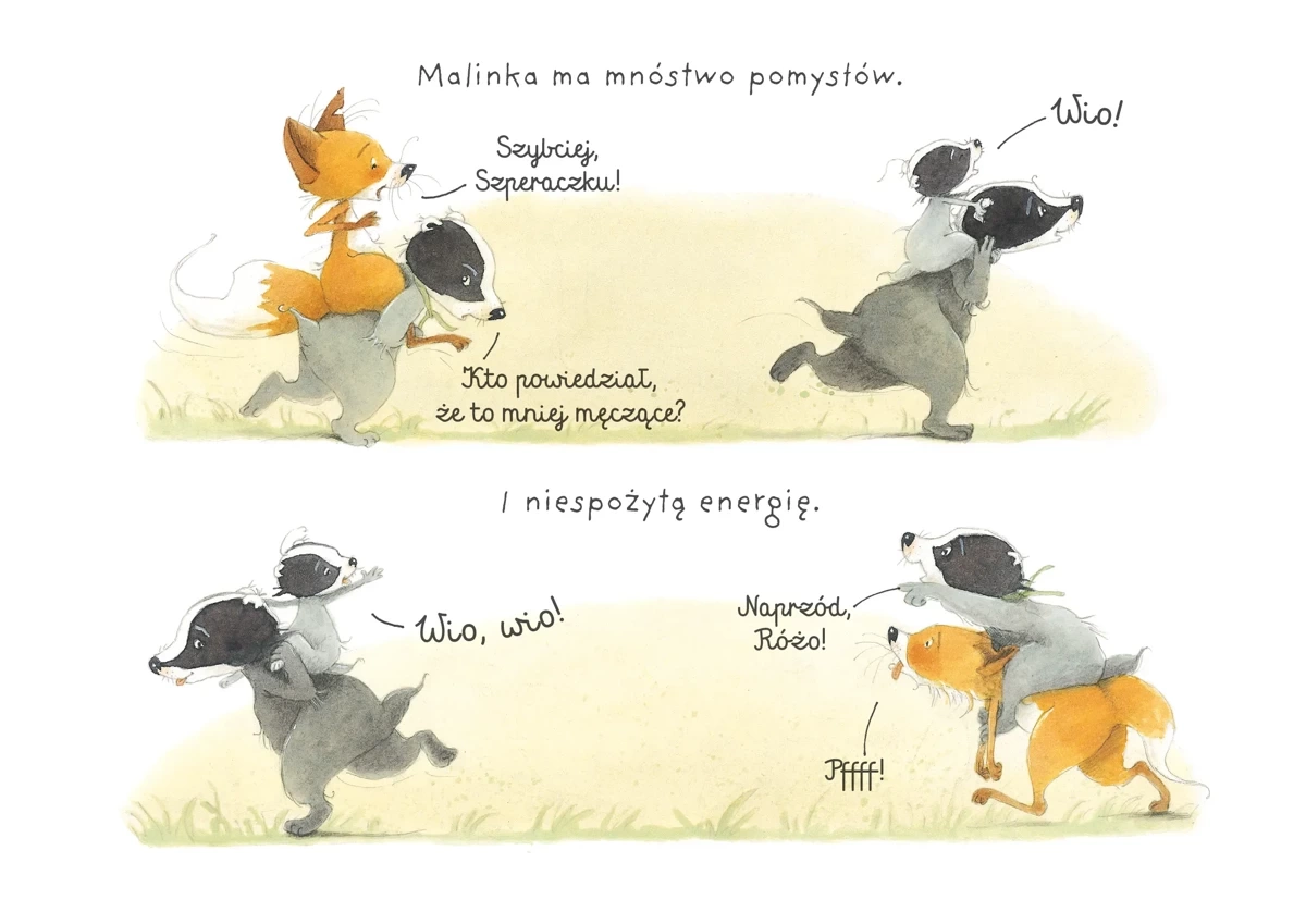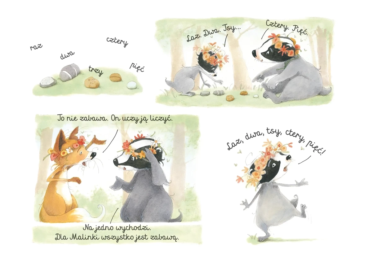 Czy znacie już rodzinę pana Borsuka i pani Lisicy? Najmłodsza z rodzeństwa, Malinka, siostra Szperaczka i Borka, prezentuje swoje przygody. Malinka uwielbia zabawy ze starszym rodzeństwem. Zawsze ma mnóstwo pomysłów i jeszcze więcej energii... Czasami aż za dużo. A przede wszystkim Malinka chce się bawić! Ta pierwsza część przygód Malinki skierowana jest do najmłodszych czytelników.