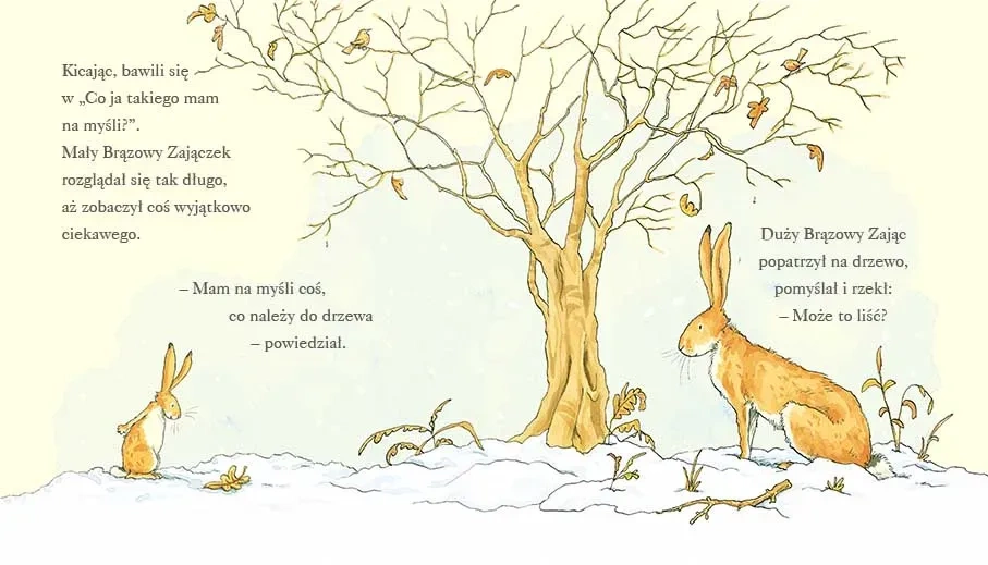 Mały Brązowy Zajączek uwielbia zimę i zabawy na śniegu. A Duży Brązowy Zając uwielbia bawić się razem z nim.