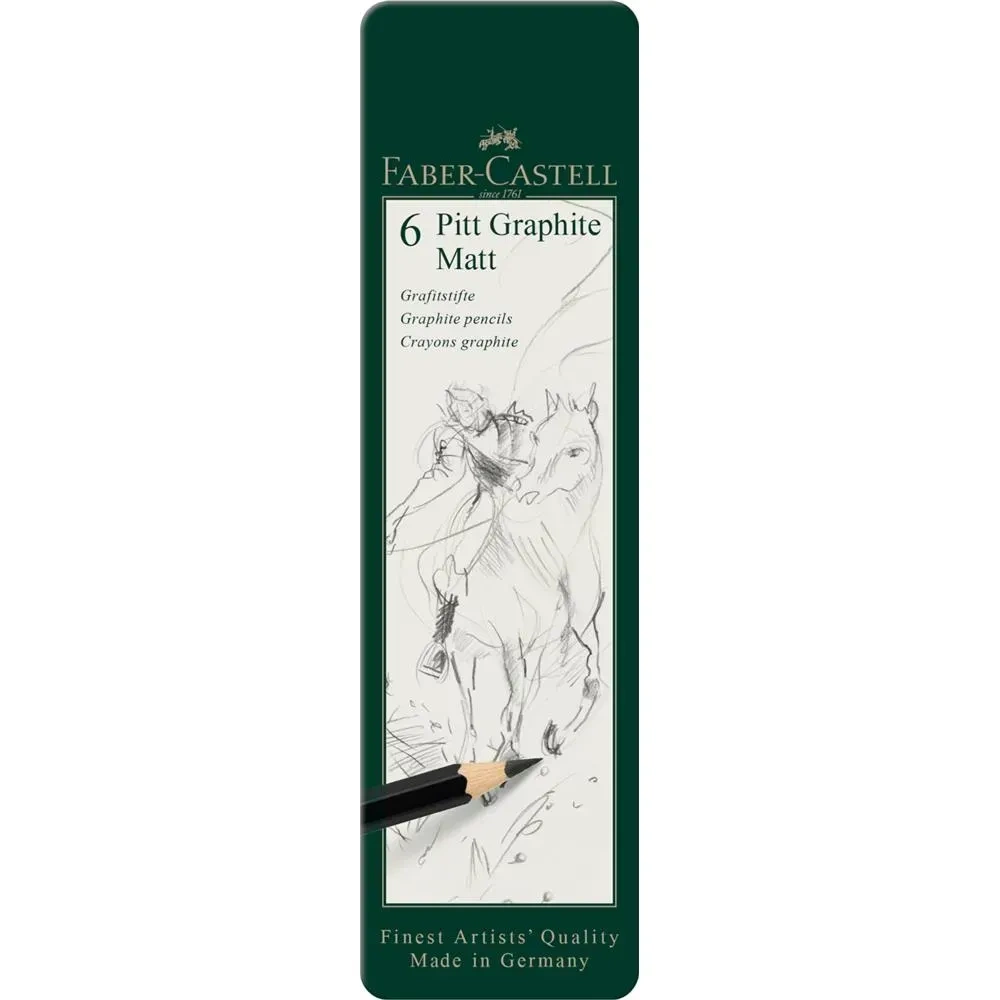 Ołówki grafitowe Pitt Graphite Matt marki Faber Castell, zestaw 6 miękkości (12B, 10B, 8B, 6B, 4B i 2B) + metalowy piórnik.