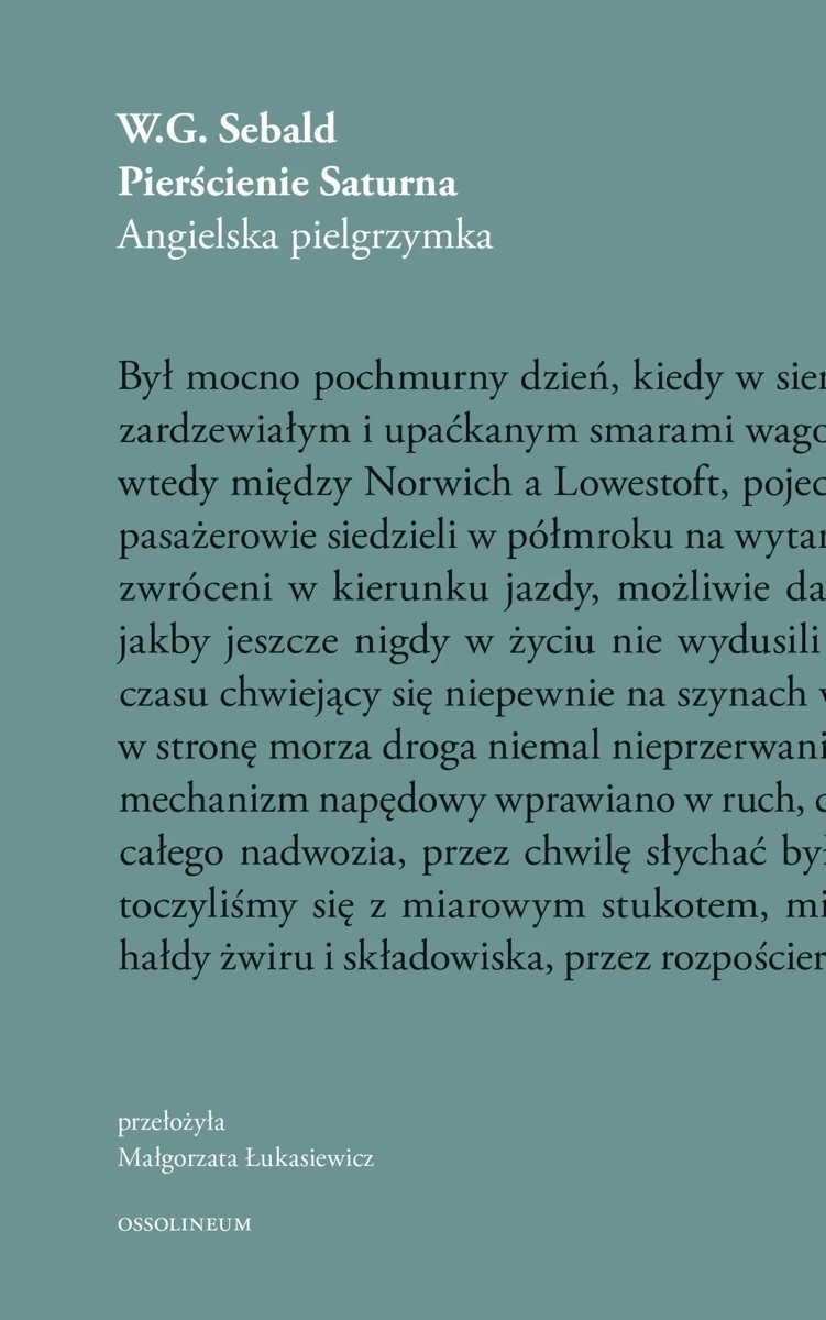 Mogłoby się wydawać, że Pierścienie Saturna to książka o przemijaniu i upadku, ale to także próba zniesienia granic na pierwszy rzut oka nieprzekraczalnych zderzenie krążących wokół tytułowej planety pierścieni.