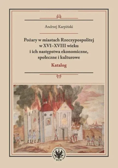Prezentowany katalog jest pierwszą w polskiej historiografii próbą całościowego zebrania wiadomości o pożarach miast i miasteczek Korony i Wielkiego Księstwa Litewskiego w XVI-XVIII w. Zawiera informacje o blisko pięciu tysiącach pożarów, z których około dwa tysiące zostało dokładniej opisanych. W szczegółowych notach uwagę zwrócono m.in. na przyczyny poszczególnych klęsk ognia, czas ich trwania, skutki, jakie za sobą pociągnęły, śmiertelne ofiary. Wszystkie zapisy dotyczące poszczególnych miast i miasteczek zaopatrzone zostały w przypisy, na końcu tomu zaś zamieszczono obszerną bibliografię. Fires in the Cities of Polish Republic in the 16th to 18th Centuries and Their Economic, Social and Cultural Consequences. A Catalogue The presented catalogue is the first attempt in Polish historiography to collect complete information concerning fires of cities and towns in the Polish Crown and the Grand Duchy of Lithuania in the 16th to 18th centuries. It includes data on nearly five thousand fires, two thousand of which are described in more detail.Tytuł