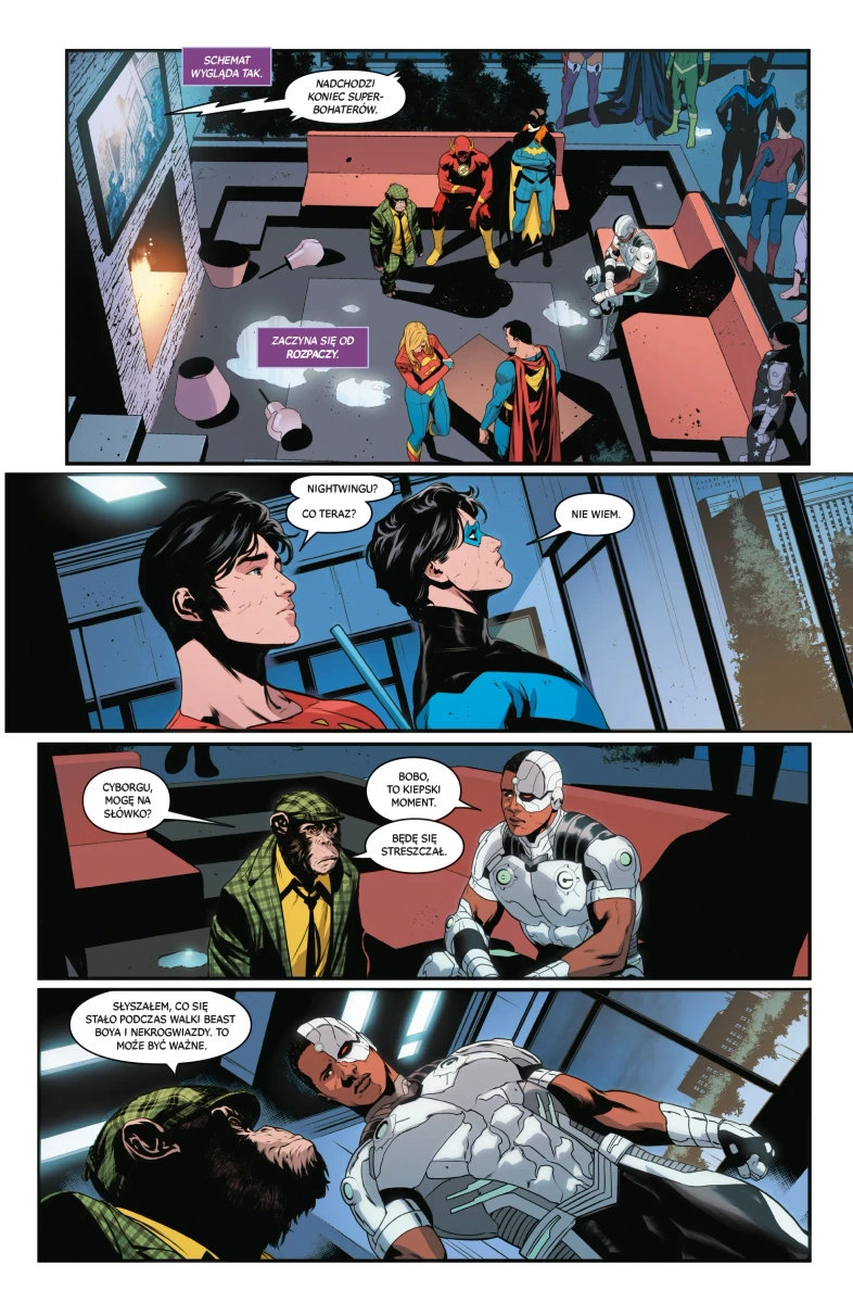 Album zawiera materiały opublikowane pierwotnie w amerykańskich zeszytach „Titans: Beast World” #3 -6, „Titans: Beast World Tour: Gotham” #1, „Titans: Beast World Tour – Metropolis” #1, „Titans: Beast World Tour. Atlantis” #1, „Titans” #6-7, „Nightwing” #109-110 i przygotowuje grunt pod kolejną ewolucję uniwersum DC.
